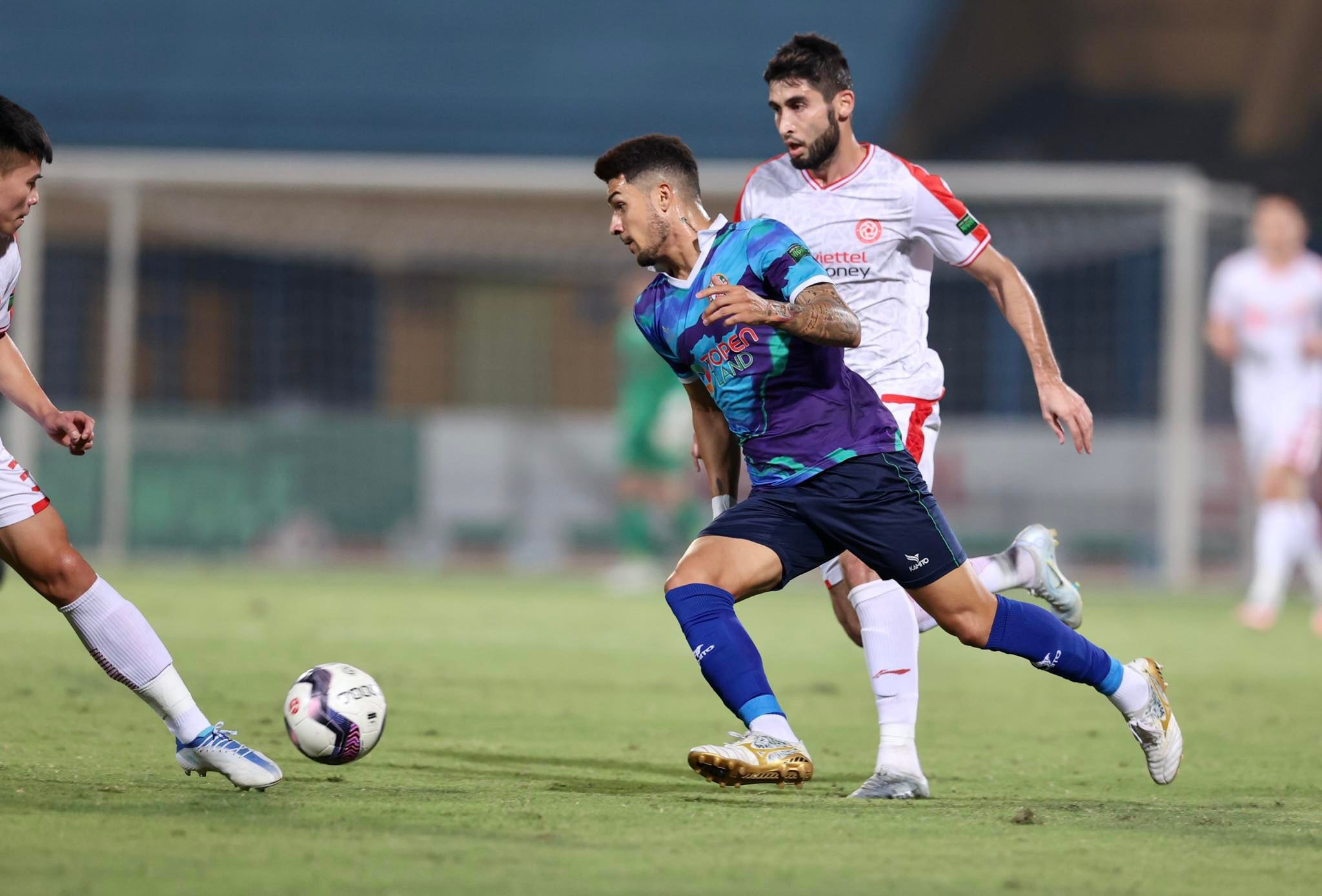 Geovane xử lý rất bình tĩnh trước vòng cấm, giữa vòng vây cầu thủ Bình Định, trước khi tung cú sút rất căng đưa bóng đi vọt xà ngang.