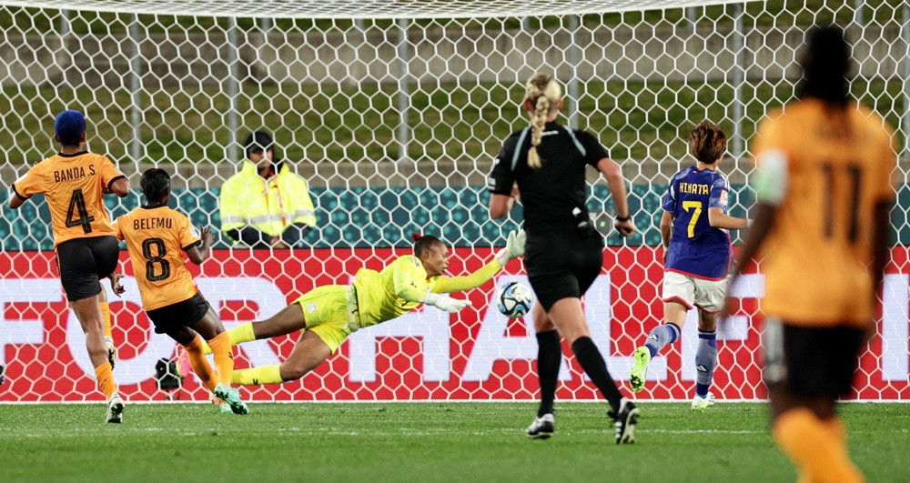 Tiền đạo vào sân thay người Riko Ueki phá bẫy việt vị thoát xuống, tuy nhiên cô sút vọt xà ngang trong pha đối mặt với thủ môn nữ Zambia.