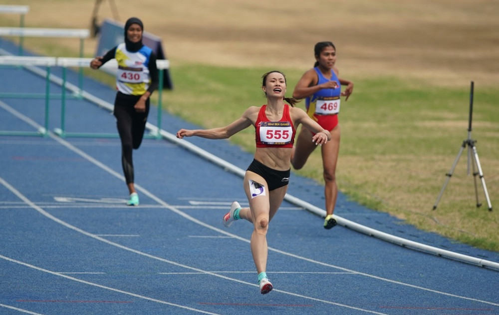 Chân chạy Huỳnh Thị Mỹ Tiên xuất sắc cán đích đầu tiên với thành tích 13 giây 50 và giành HCV nội dung chạy 100m vượt rào nữ. HCB cũng thuộc về VĐV khác của Việt Nam là Bùi Thị Nguyên với thời gian 13 giây 52. Nguyên chính là người chiến thắng ở cự ly này ở SEA Games 31, tại Mỹ Đình.