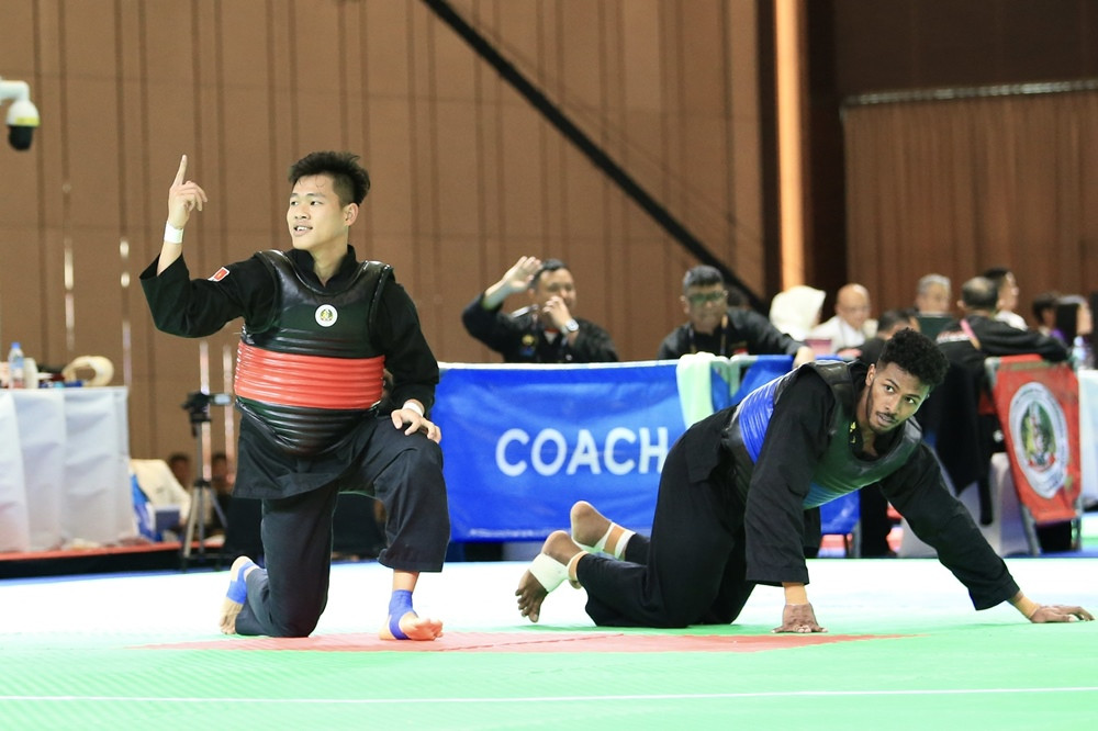 Võ sĩ Nguyễn Duy Tuyến thắng đối thủ người Singpore ở hạng cân 80-85kg nam, qua đó giành tấm HCV thứ 4 cho Pencak Silat Việt Nam.