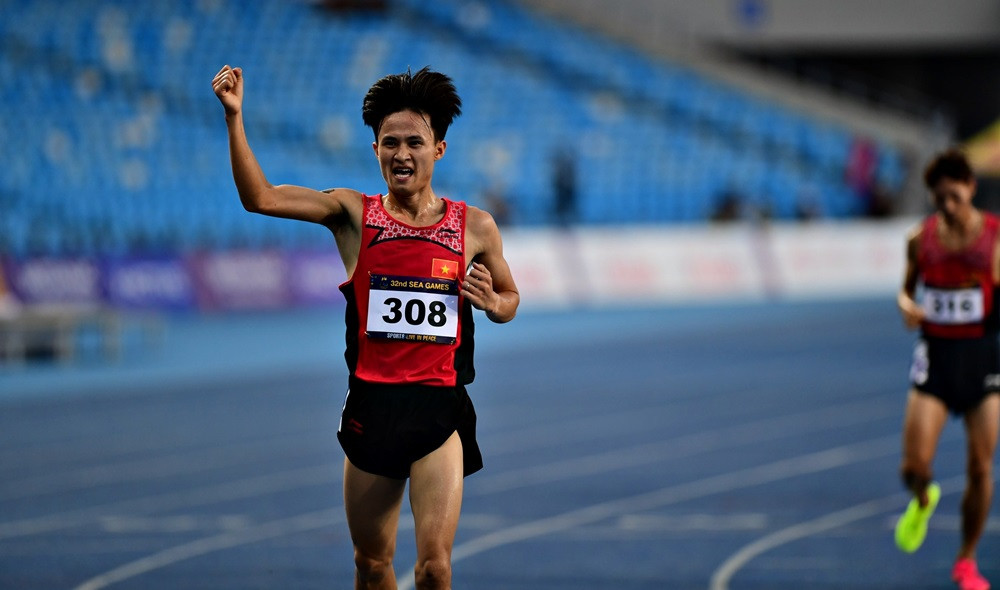 VĐV Nguyễn Trung Cường với cú nước rút ấn tượng để giành HCV nội dung chạy 3.000m chướng ngại vật dành, thành tích 8 phút 51 giây 99. Trong khi đó, Lê Tiến Long cán đích vị trí thứ 2 và giành HCB.
