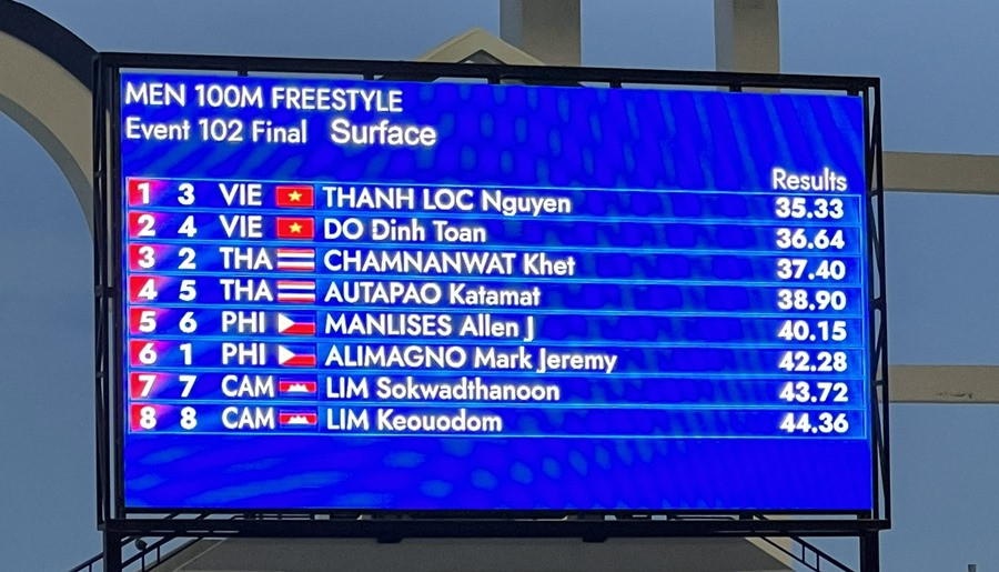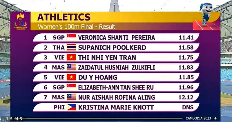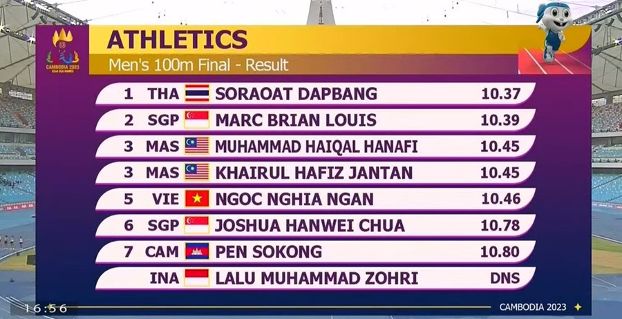 Đáng tiếc là kỷ lục gia điền kinh Việt Nam Ngần Ngọc Nghĩa chỉ xếp thứ 5 với thành tích 10 giây 46