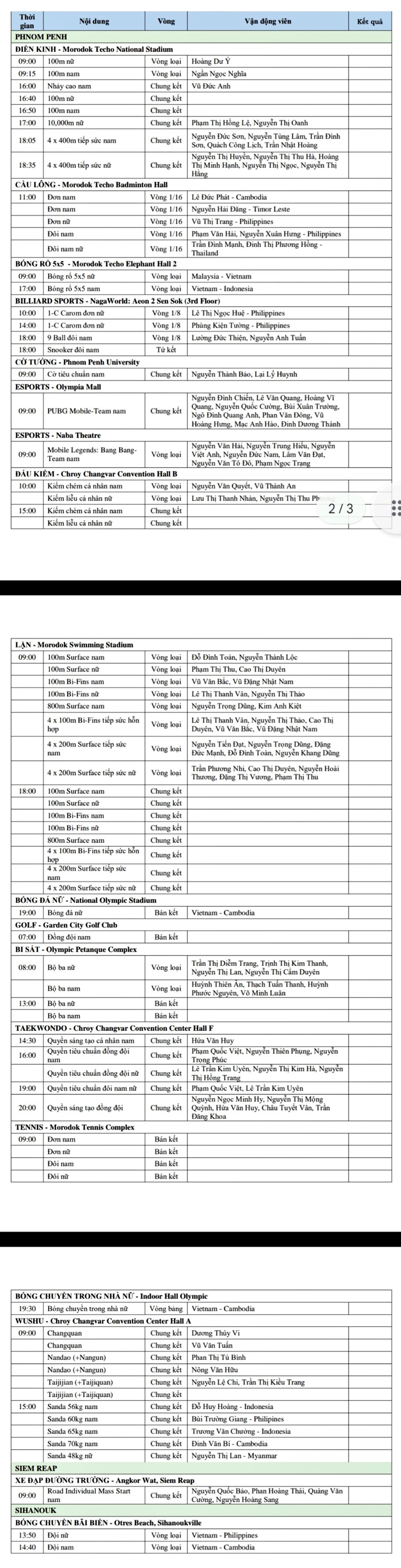 Lịch thi đấu của đoàn thể thao Việt Nam tại SEA Games 32 ngày 12/5