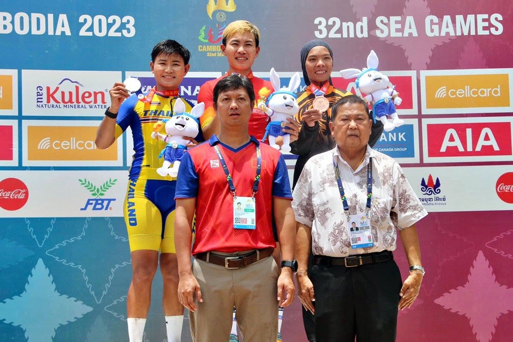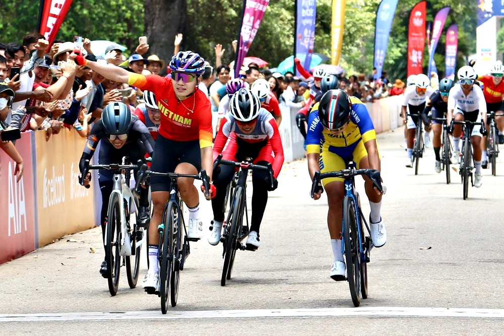Với cú nước rút ngoạn mục, cua rơ Nguyễn Thị Thật vượt qua hai VĐV người Thái Lan và Malaysia để giành HCV nội dung đường trường xuất phát đồng hàng nữ.