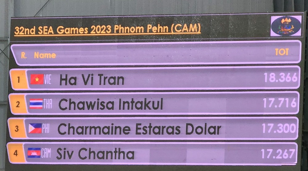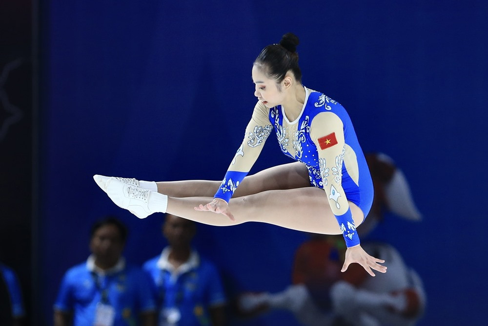 VĐV Trần Hà Vi đạt số điểm 18.366, xếp nhất nội dung đơn nữ và đoạt HCV thứ 2 cho aerobic Việt Nam.