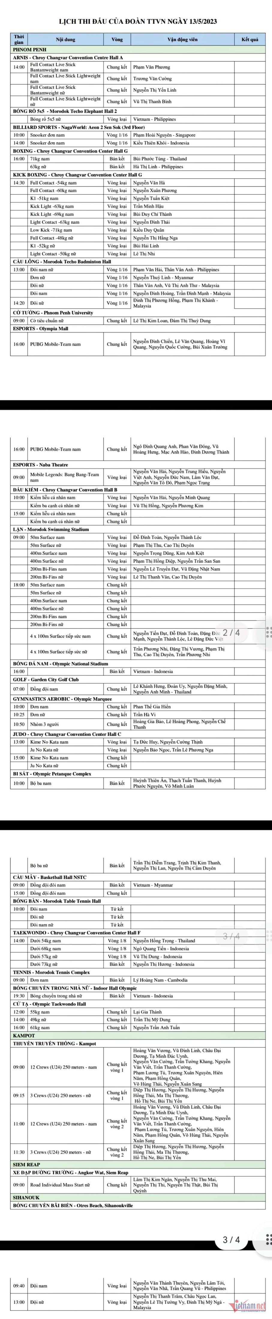 Lịch thi đấu SEA Games 32 của đoàn Việt Nam hôm nay 13/5