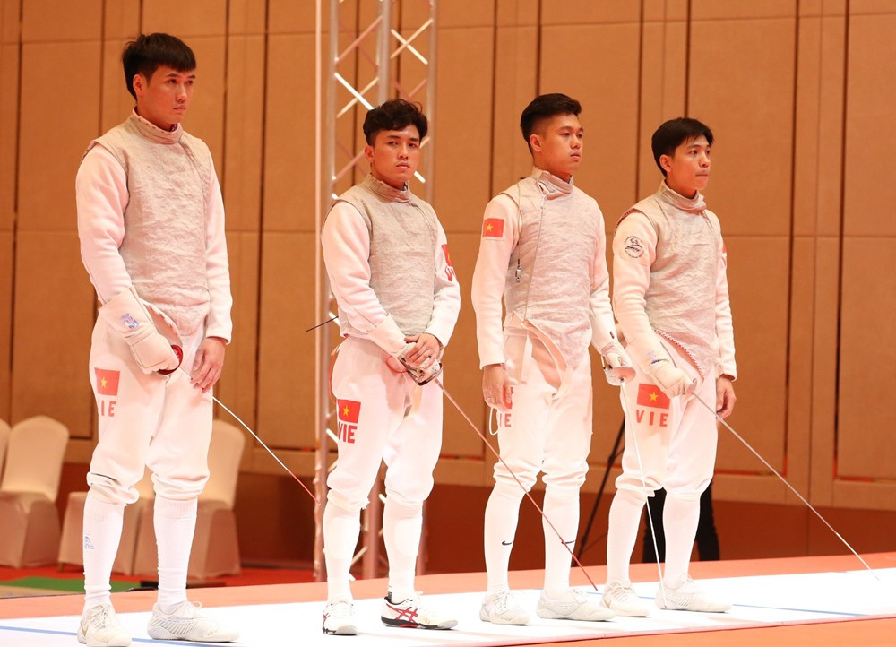Các VĐV Cao Minh Duyệt, Phạm Quốc Tài, Nguyễn Văn Hải và Nguyễn Minh Quang xuất sắc đánh bại đội tuyển mạnh Singapore với tỉ số 45-37 ở chung kết nội dung kiếm liễu đồng đội nam, qua đó giành HCV.