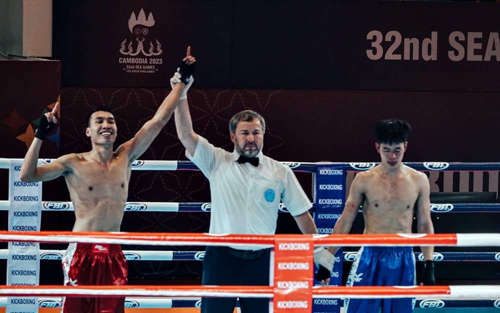 Võ sĩ Nguyễn Xuân Phương vượt qua đối thủ người Lào bằng tính điểm ở chung kết kick boxing hạng cân dưới 60kg nam. Đây là tấm HCV thứ 127 của đoàn thể thao Việt Nam tại SEA Games 32.