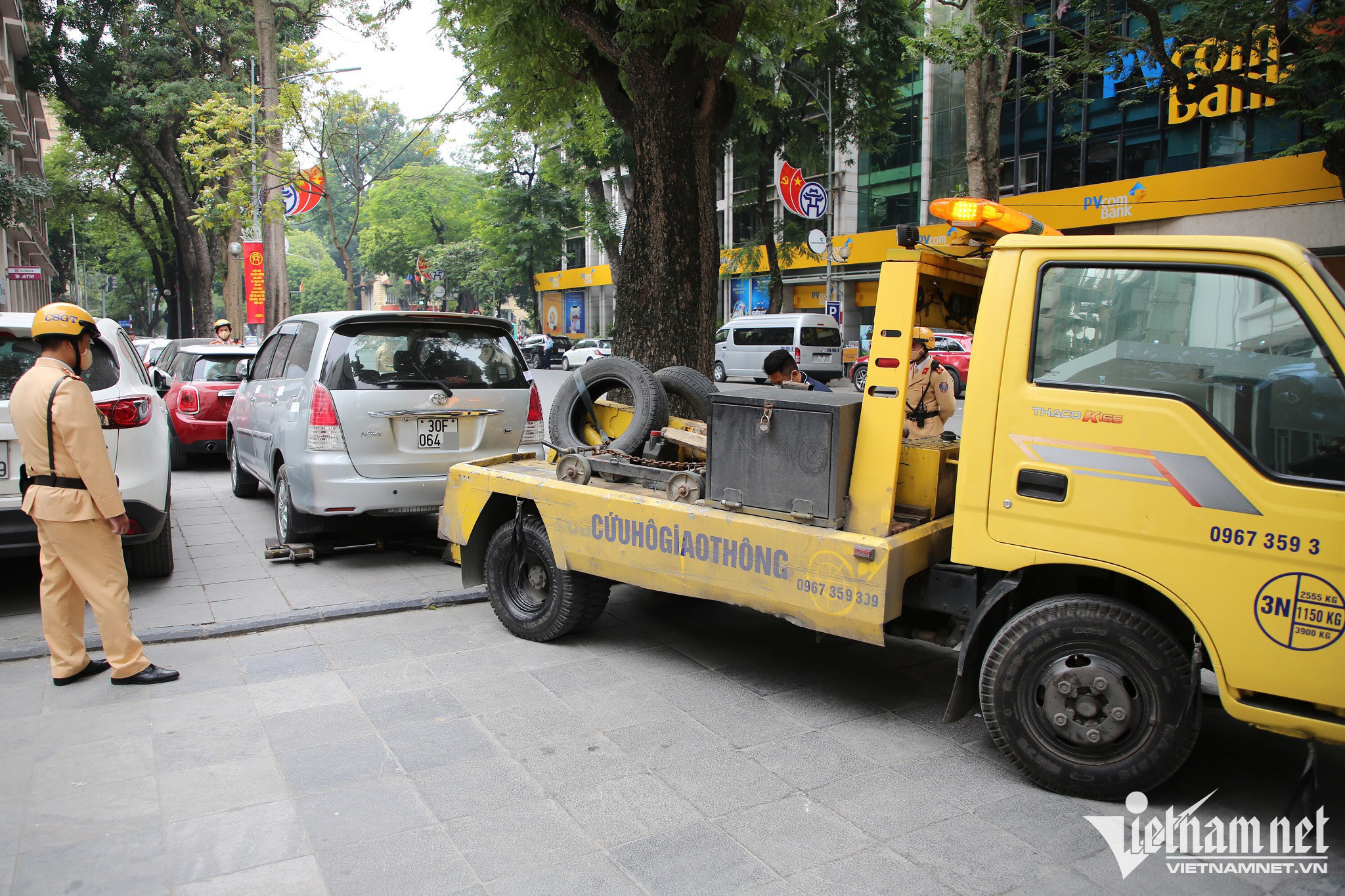 “Quá trình phát hiện, xử lý vi phạm lực lượng làm nhiệm vụ sẽ sử dụng loa hoặc gọi điện thoại để lại trên kính xe để mời tài xế có ô tô dừng, đỗ sai quy định làm việc với lực lượng CSGT. Sau khoảng 15- 20 phút, nếu chủ xe không có mặt thì buộc phải cưỡng chế bằng cách cẩu kéo phương tiện”, Thiếu tá Trần Quang Chinh cho biết.