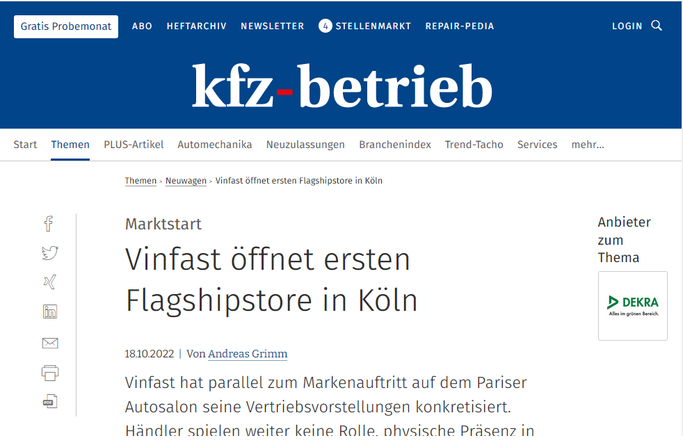 “Với VinFast, mọi thứ hiện đang trở nên cụ thể với việc gia nhập thị trường châu Âu. Hãng không chỉ muốn chinh phục khách hàng bằng sản phẩm mà còn bằng dịch vụ vượt trội. Người Việt Nam hiện đang có một thương hiệu ô tô rất mạnh và cực hấp dẫn về mặt hình ảnh”, báo Đức nhận định.