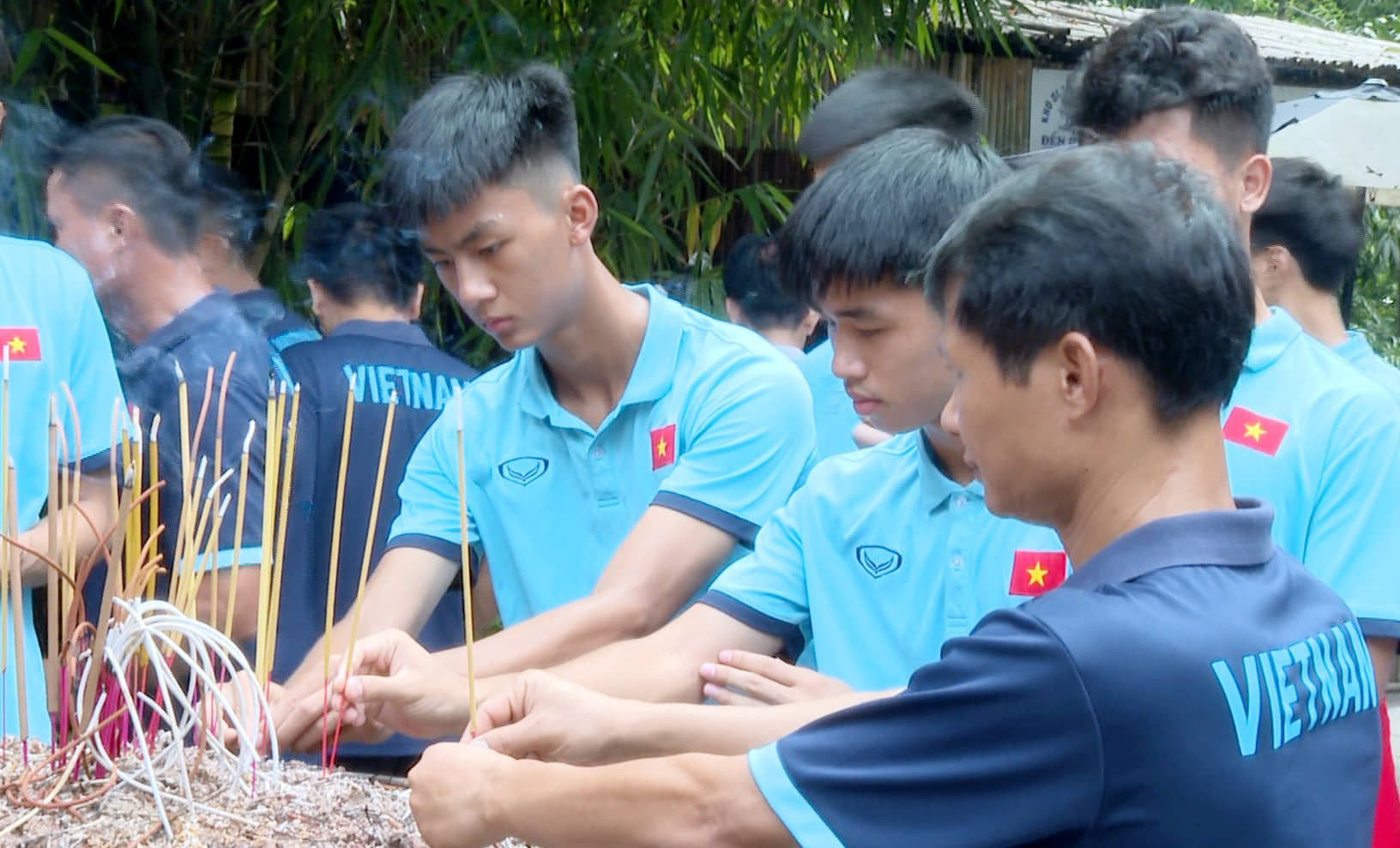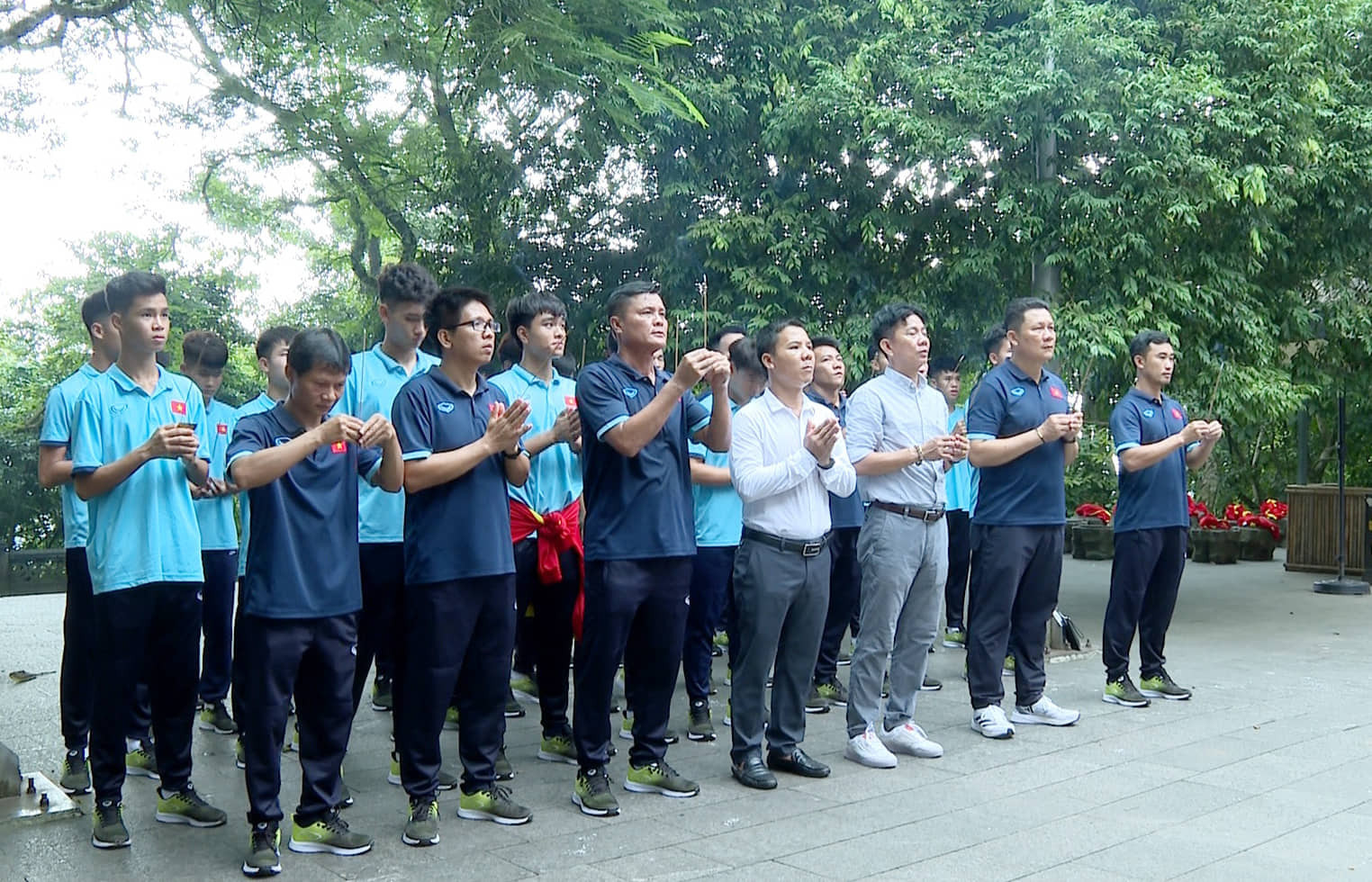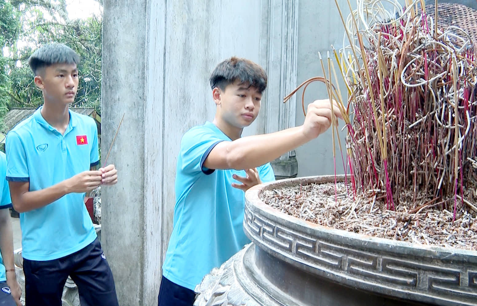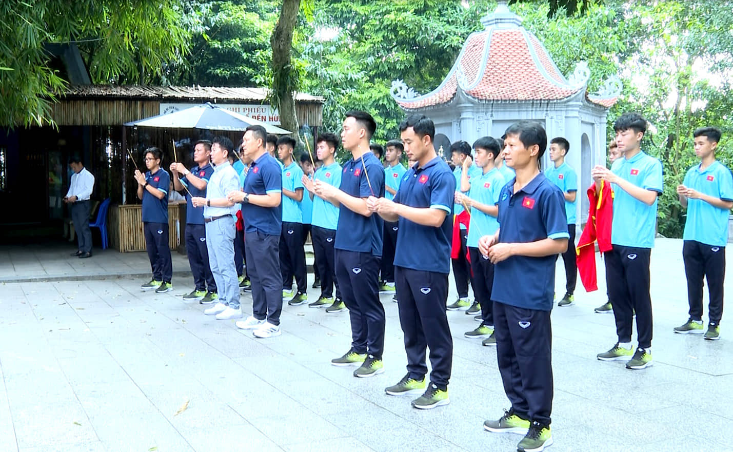 Hai ngày trước trận ra quân tại vòng loại giải U17 châu Á 2022, các thành viên U17 Việt Nam làm lễ dâng hương tại Đền Hùng (Phú Thọ).
