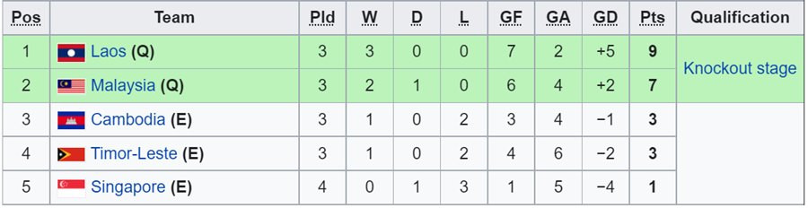 Chung cuộc, hai đội hòa nhau 0-0. Malaysia đã có 4 điểm trong khi Singapore vẫn chưa giành điểm nào và gần như chắc chắn bị loại.