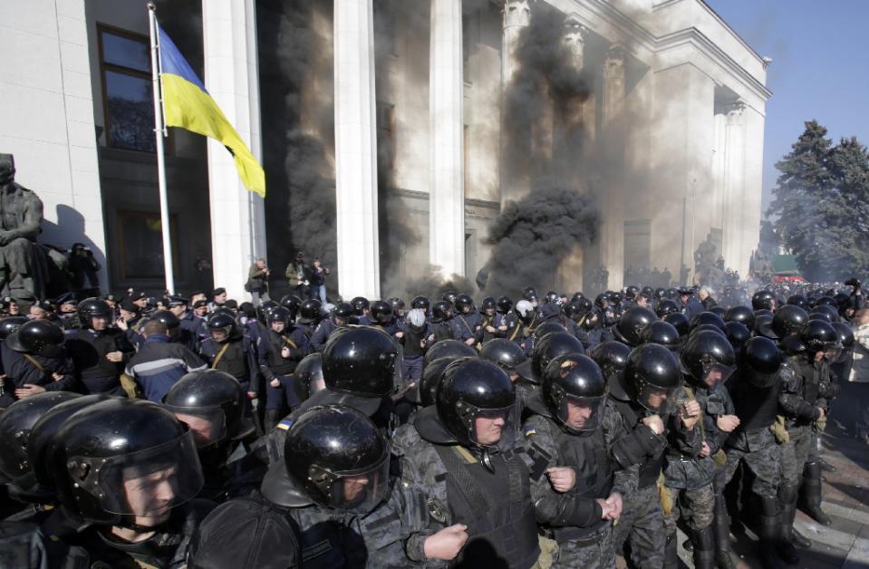 Hỗn loạn đã bùng phát tại thủ đô Kiev của Ukraina sau khi quốc hội nước này ủng hộ dự thảo sửa đổi hiến pháp, trao quyền tự trị lớn hơn cho miền đông.