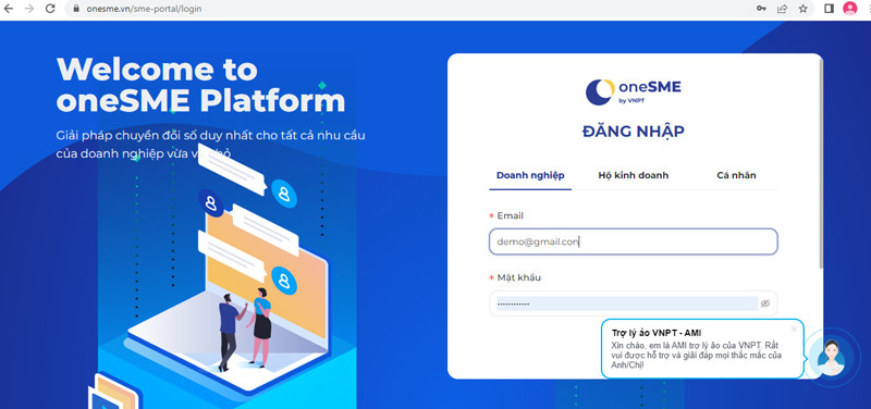 Bước 4: Doanh nghiệp sử dụng tài khoản bao gồm email, mật khẩu đã đặt để thực hiện đăng nhập vào oneSME và mua các sản phẩm dịch vụ viễn thông - CNTT theo nhu cầu.