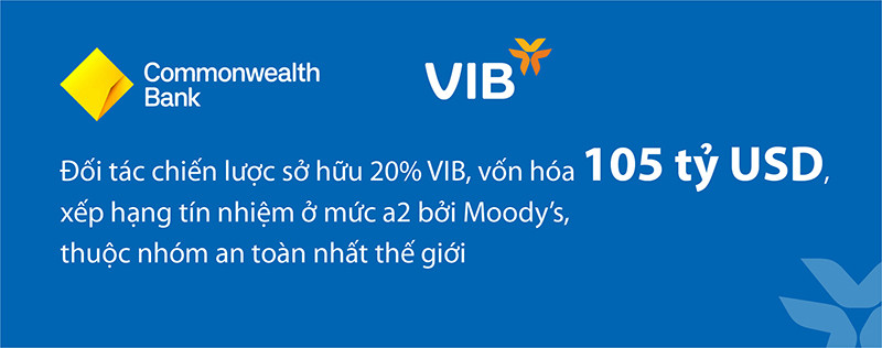 9 tháng qua, tổng vốn chủ sở hữu của VIB đạt 30.500 tỷ đồng, tăng 26% so với cuối năm 2021, cao hơn gấp đôi so với tốc độ tăng trưởng dư nợ. Đối tác chiến lược CBA (Commonwealth Bank of Australia) là cổ đông lớn nhất của VIB với 20% vốn góp.