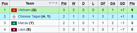 | Xếp hạng bảng H vòng loại U19 châu Á 2018 |