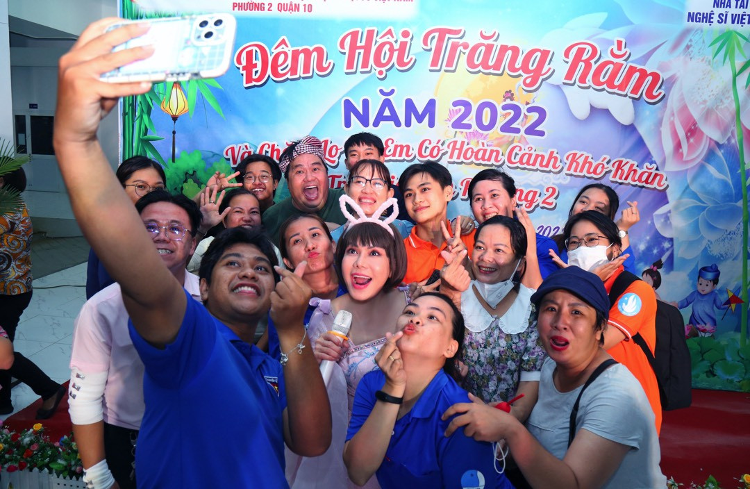 Tối 6/9, vợ chồng nghệ sĩ Việt Hương - Hoài Phương phối hợp với ban lãnh đạo phường 2, quận 10, TP.HCM tổ chức chương trình Đêm rằm trung thu với sự tham gia của các đồng nghiệp như MC Đại Nghĩa, nghệ sĩ Hoàng Mập, ca sĩ Vũ Uyên Nhi,…