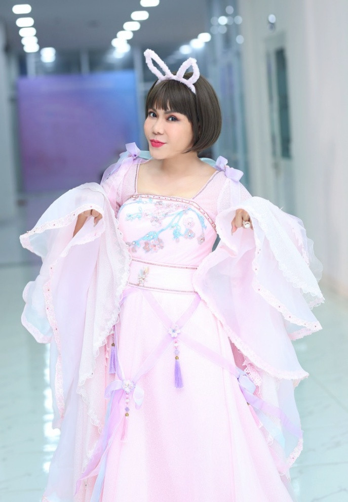 Vào vai nàng Thỏ Ngọc nhí nhảnh, Việt Hương tiết lộ mượn được bộ trang phục của nghệ sĩ Bình Tinh cho buổi trung thu sớm đặc biệt này.