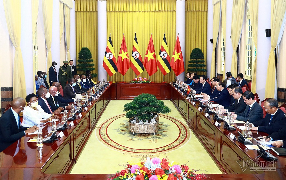Chủ tịch nước Nguyễn Xuân Phúc và Tổng thống Yoweri Kaguta Museveni khẳng định quyết tâm tăng cường hợp tác kinh tế, nâng cao kim ngạch thương mại song phương tương xứng với quan hệ chính trị tốt đẹp, với quy mô thị trường gần 150 triệu dân của hai nền kinh tế.