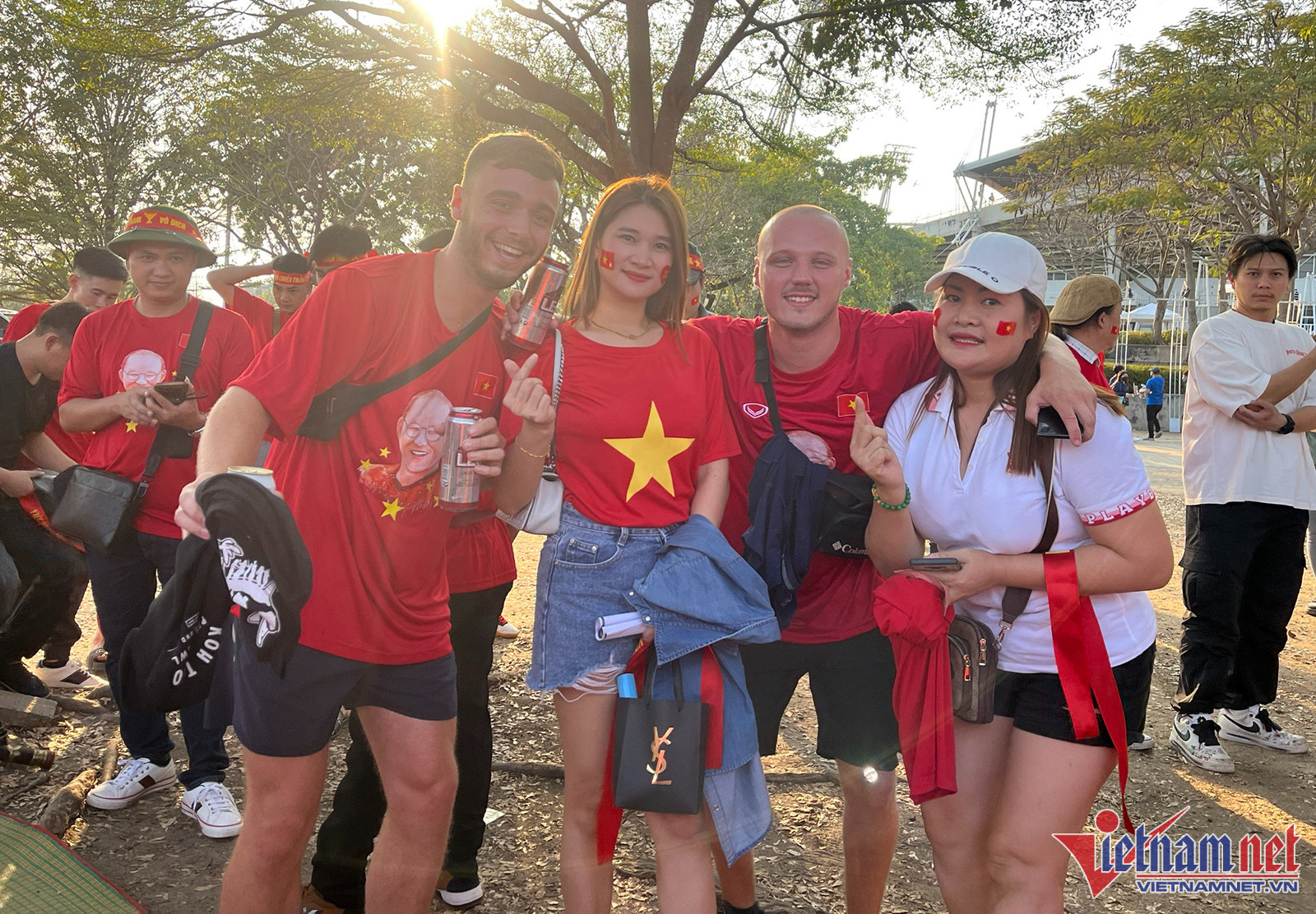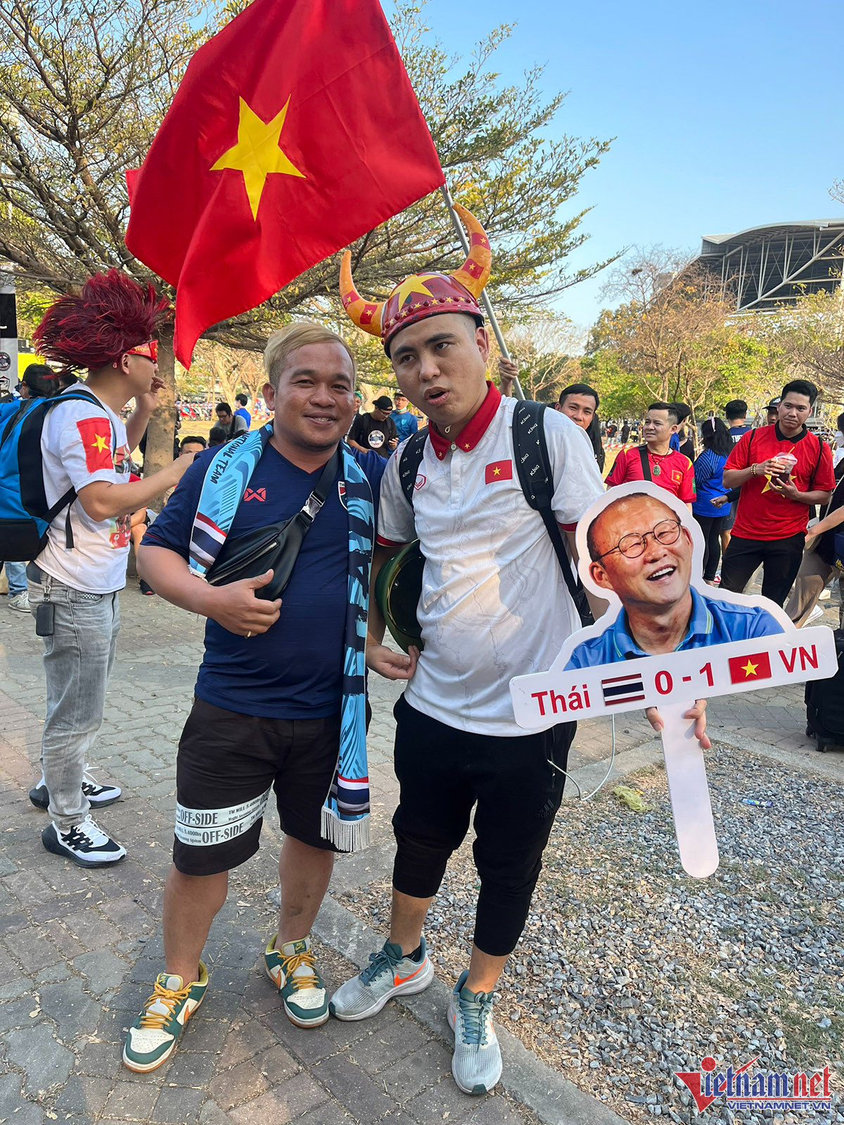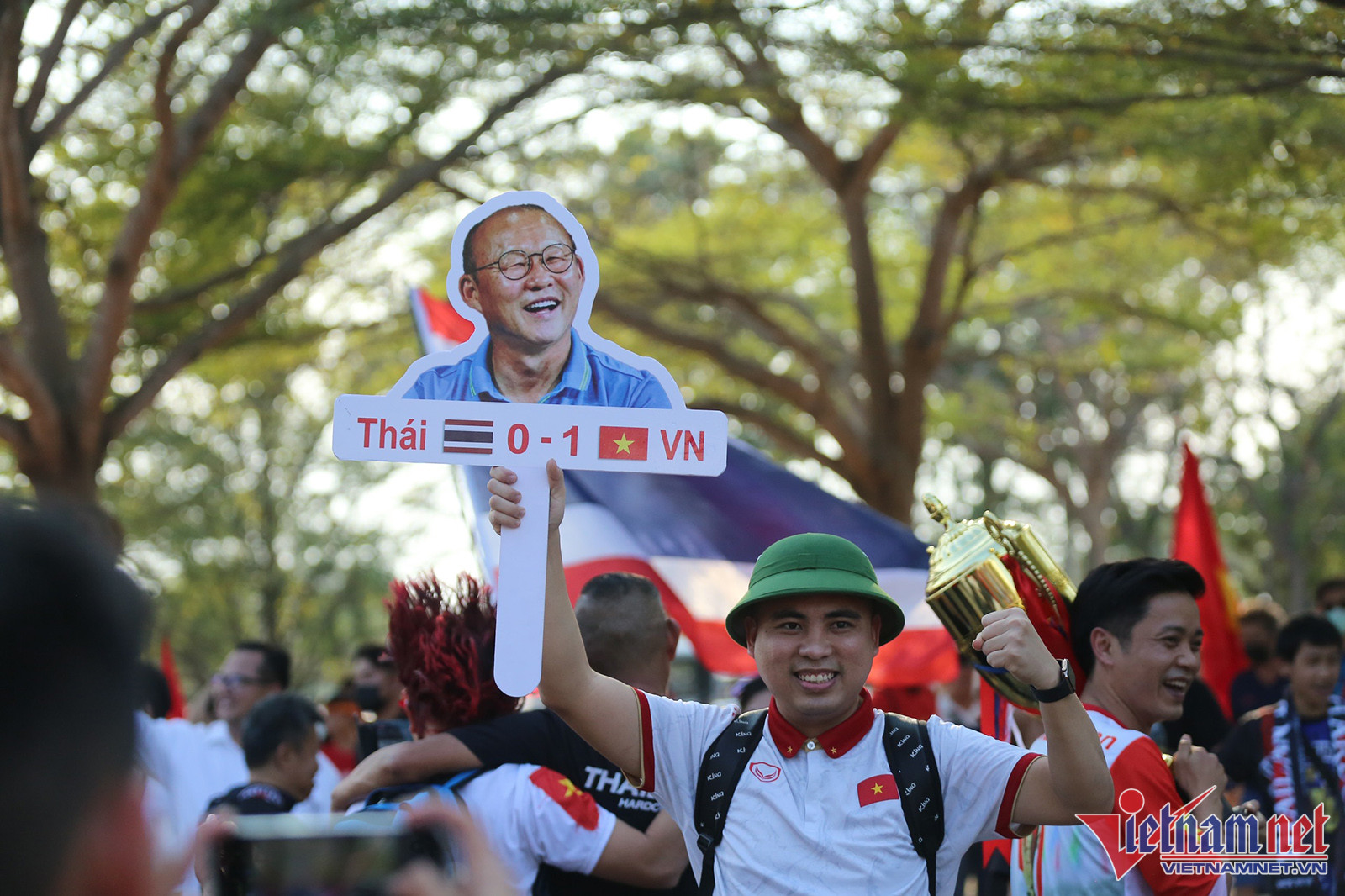 Trước trận chung kết 4 tiếng đồng hồ, hàng nghìn CĐV đổ về sân Thammasat, trong đó các CĐV áo đỏ của Việt Nam trở thành tâm điểm bởi sự cuồng nhiệtCác CĐV "Tây" hâm mộ tuyển Việt Nam cũng có mặt trên sân ThammasatCĐV Việt Nam và Thái Lan giao lưu trước trận đấu.Một CĐV chủ nhà gây sự chú ý bởi trang phục truyền thống.Đây là dịp để các fan nữ hai đội khoe sắcCác CĐV mang theo ảnh thầy ParkVà cả mũ cối với dòng chữ 'Việt Nam vô địch'Trận đấu giữa tuyển Việt Nam vs Thái Lan rất được chờ đợi.\Dự kiến có 2.000 CĐV Việt Nam vào sân Thammasat cổ vũ thầy trò HLV Park Hang SeoTất cả đều cháy hết mình, sát cánh cùng thầy trò HLV Park Hang SeoCác CĐV Việt Nam tiếp lửa giúp thầy trò HLV Park Hang Seo giành cúp vô địchĐây chính là món quà tri ân dành tặng HLV Park Hang SeoHLV Park Hang Seo xứng đáng có một cái kết thật ý nghĩa trước khi chia tay tuyển Việt NamTrận chung kết lượt về AFF Cup 2022 giữa tuyển Việt Nam vs Thái Lan diễn ra vào lúc 19h30 trên sân Thammsat