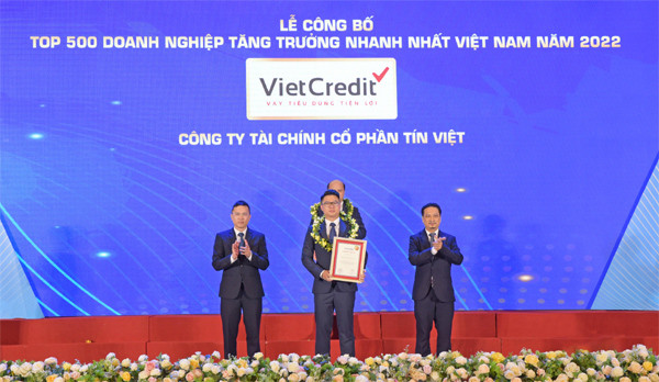 Năm 2022, VietCredit tiếp tục góp mặt trong bảng xếp hạng FAST500 và thăng hạng vượt bậc so với năm ngoái và là công ty duy nhất trong ngành tài chính ngân hàng có mặt trong top 10. Các vị trí tiếp theo trong top 10 là những “ông lớn” trong ngành bất động sản, chứng khoán, bảo hiểm. Đặc biệt, chỉ xét riêng nhóm công ty tài chính tiêu dùng trong bảng xếp hạng, VietCredit hiện vẫn xuất sắc dẫn đầu bảng 2 năm liên tiếp 2021-2022.
