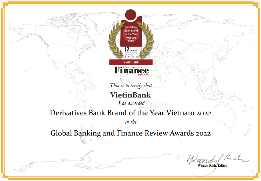 Giải thưởng được Global Banking & Finance Review tổ chức thường niên với mức độ uy tín và minh bạch cao nhằm ghi nhận và tôn vinh các đơn vị xuất sắc trong lĩnh vực tài chính. VietinBank đã xuất sắc vượt qua nhiều ứng cử viên sáng giá để chinh phục Hội đồng Giám khảo của Global Banking & Finance Review bằng chất lượng sản phẩm dịch vụ vượt trội.