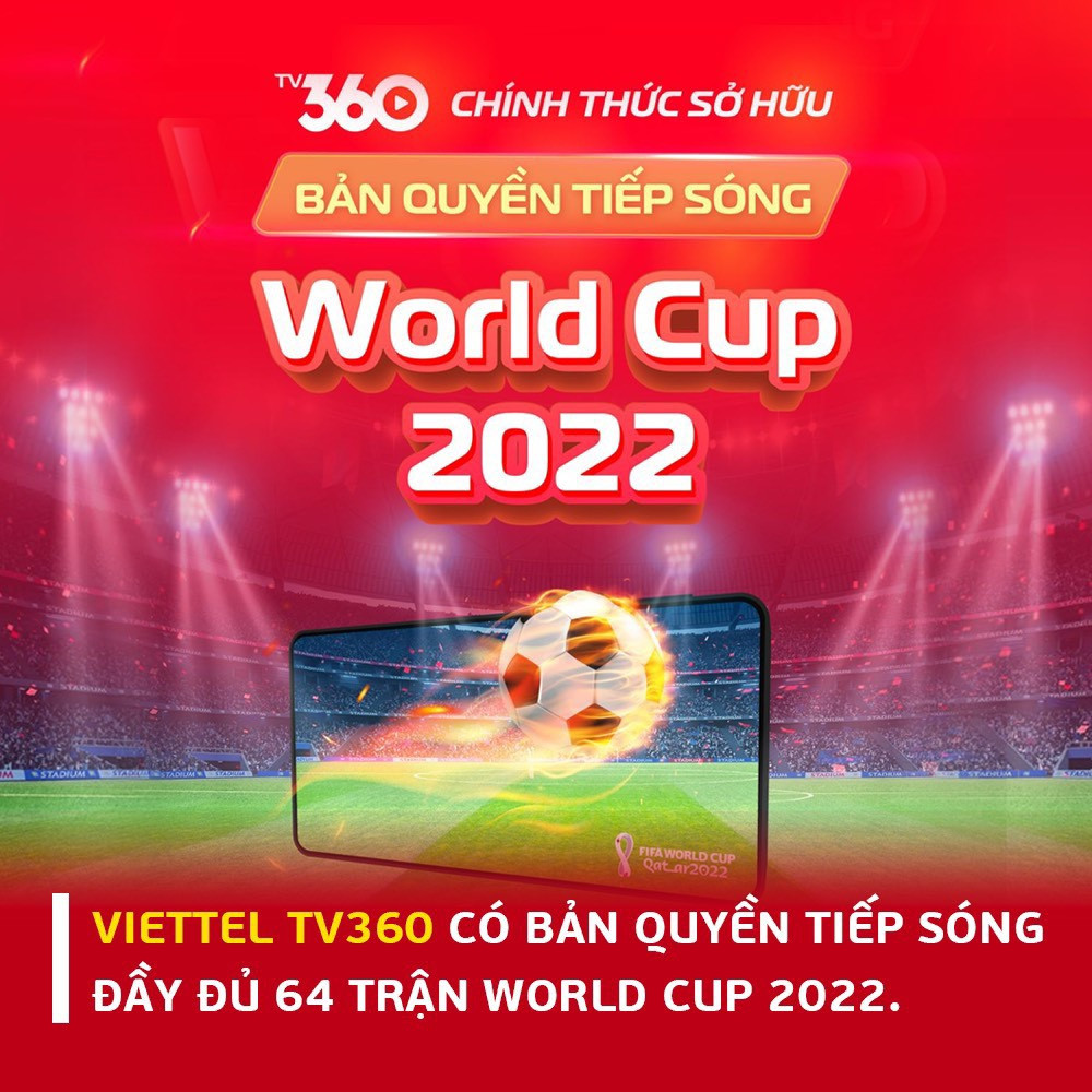 Theo đó, toàn bộ 64 trận đấu trong khuôn khổ World Cup 2022 sẽ được tiếp phát sóng trực tiếp trên hạ tầng truyền hình IPTV, website và ứng dụng TV360 của Viettel.
