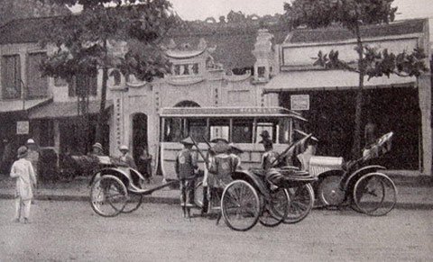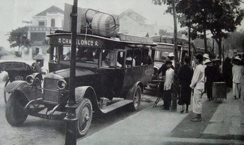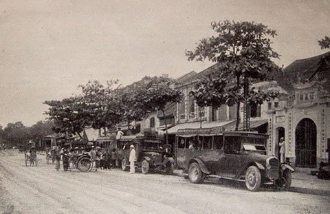 | Một điểm đón trả khách của xe buýt ở phố Clemenceau (nay là đường Trần Nhật Duật) Hà Nội năm 1928. |