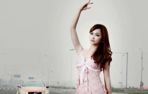Chiếc siêu xe Volvo màu cam làm nền cho người đẹp khoe đường cong nóng bỏng và cuốn hút trong trang phục nội y màu đen.