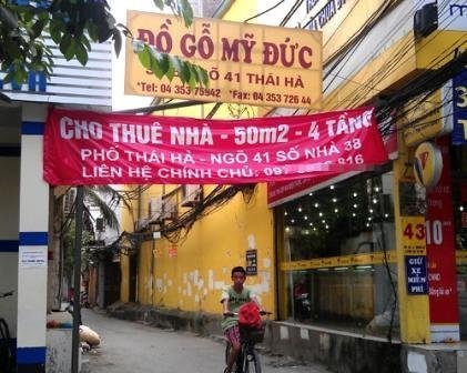 Chị Trang cho biết: “Cứ mỗi sáng dậy, nhìn tường nhà lại bực mình. Không hiểu sao dạo này lắm quảng cáo nhà đất thế. Vấn nạn khoan cắt bê tông, thông cống bị dẹp bớt thì lại nổi lên rao bán nhà”. Chị Trang đã ghi hẳn dòng chữ “không dán quảng cáo rao vặt tại đây” nhưng điều này không có tác dụng hiệu quả.