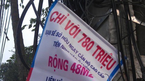 Cách đây ít lâu, trên đường Cầu Giấy, quảng cáo “Chung cư bán giá gốc 15,6 triệu/m2, thanh toán 8 lần, cách Cầu Giấy 10 phút đi xe” được treo nhan nhản. Tương tự như vậy, các tuyến phố như Lê Văn Lương, Tây Sơn, Nguyễn Trãi cũng đầy rẫy những rao vặt nhà đất.