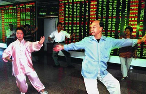 Quá chán nản với tình hình u ám trên thị trường chứng khoán, một nhóm các nhà đầu tư tại Trung Quốc đã biến sàn giao dịch thành nơi luyện thái cực quyền. Trong khi đó truyền thông nhà nước Trung Quốc e ngại thị trường sẽ sụp đổ vì mất niềm tin.