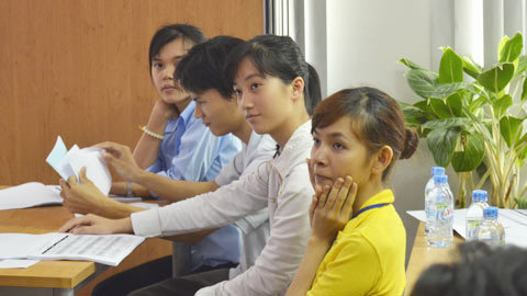 13h 30, buổi học bắt đầu. Loan và các bạn được học về tổng quan về công việc lập trình, phát triển dự án nói chung và một số ngành công nghiệp nội dung trên Internet. Trong vòng 3 tháng, Loan và các bạn sẽ được học 10 môn học, bao gồm 7 môn học chuyên về lập trình, phát triển dự án và 3 môn học về các kỹ năng phần mềm.