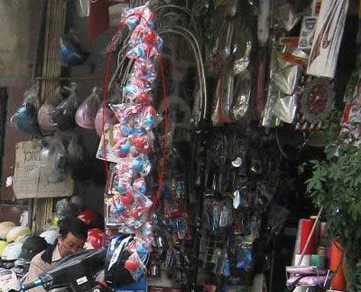 Những vật dụng gắn lên xe máy có hai loại, một loại là hình hoạt hình “siêu nhân” được gắn bằng mút hoặc ốc vít (người nhện, người dơi, mèo kitty, đô-rê-mon, thỏ, thiên thần…), một loại gần giống decal dán lên biển số xe (con bướm). Giá bán các “siêu nhân” dao động từ 35.000-60.000 đồng/con tùy loại, bướm dán 30.000-35.000 đồng/con.