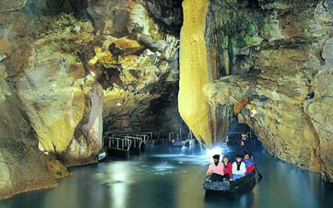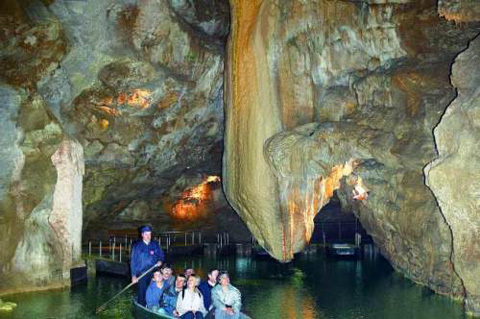 Đi bộ để khám phá phòng triển lãm là khâu đầu tiên trong chuyến tham quan hang động. Chúng ta sẽ nhìn thấy những tảng đá trông như được chạm khắc và đánh bóng qua sự xói mòn của thời gian. Đi bộ khoảng vài trăm mét nữa sẽ thấy bến tàu. Du khách sẽ phải chia ra từng nhóm nhỏ, khoảng 11 người trên một chiếc thuyền để tiếp tục chuyến ngao du trên mặt nước. Trên con thuyền này, bạn có thể chiêm ngưỡng vẻ đẹp của động mọi góc độ.