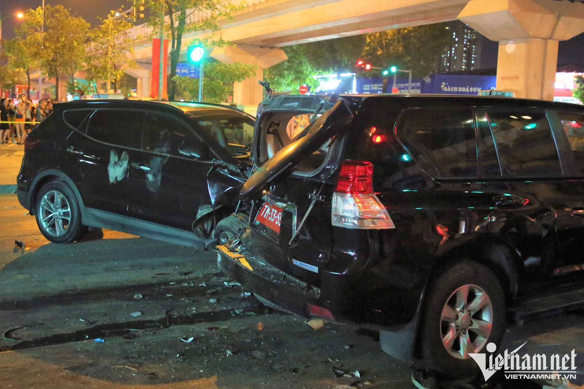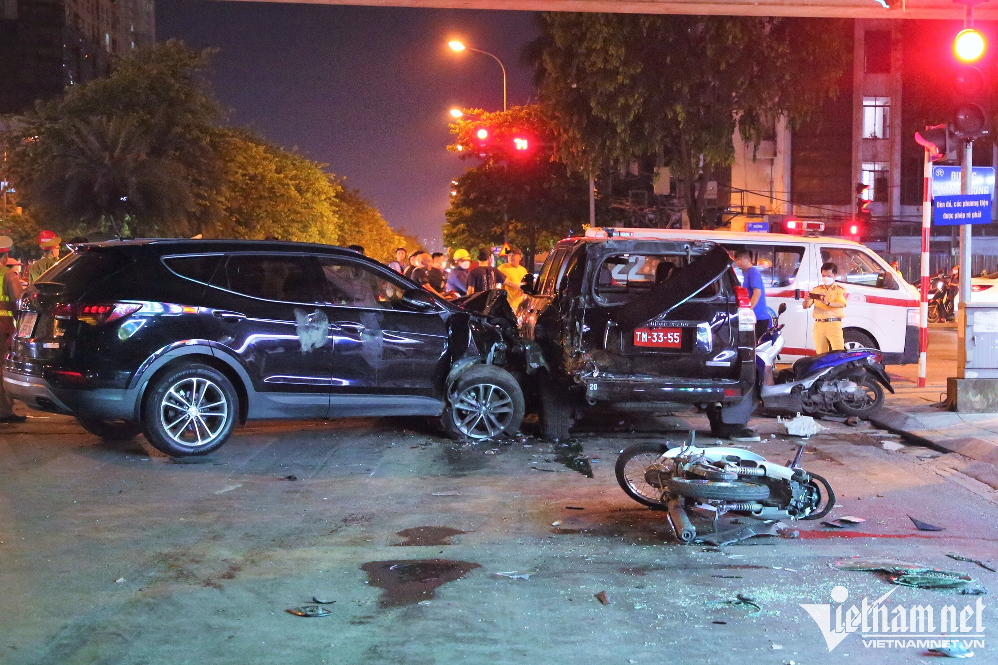 Trước đó, khoảng 20h45 ngày 28/7, vụ tai nạn liên hoàn xảy ra tại phố Ngô Thì Nhậm (quận Hà Đông). Xe SantaFe do tài xế Hà Thanh Hưng điều khiển đã đâm liên hoàn vào ô tô biển đỏ, taxi 5 chỗ và ô tô bán tải cùng 6 xe máy.