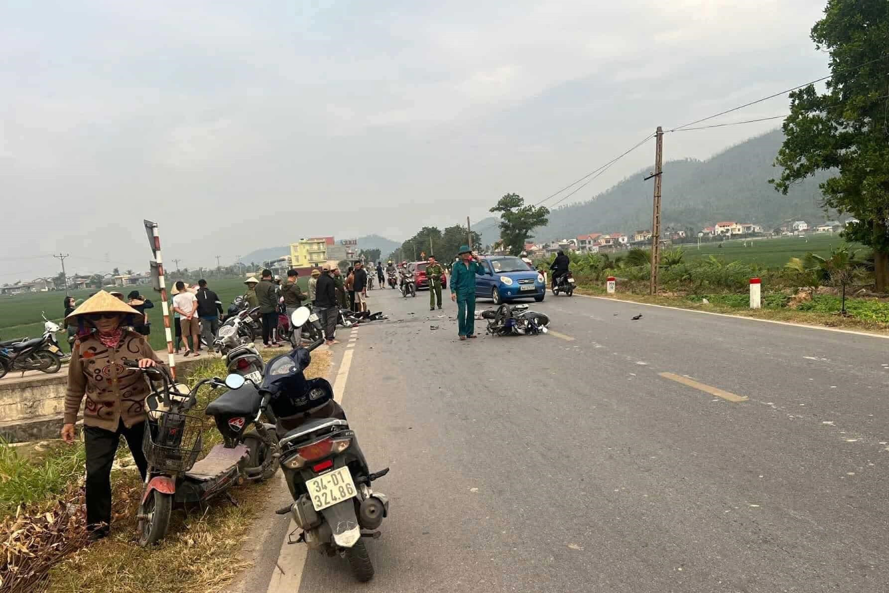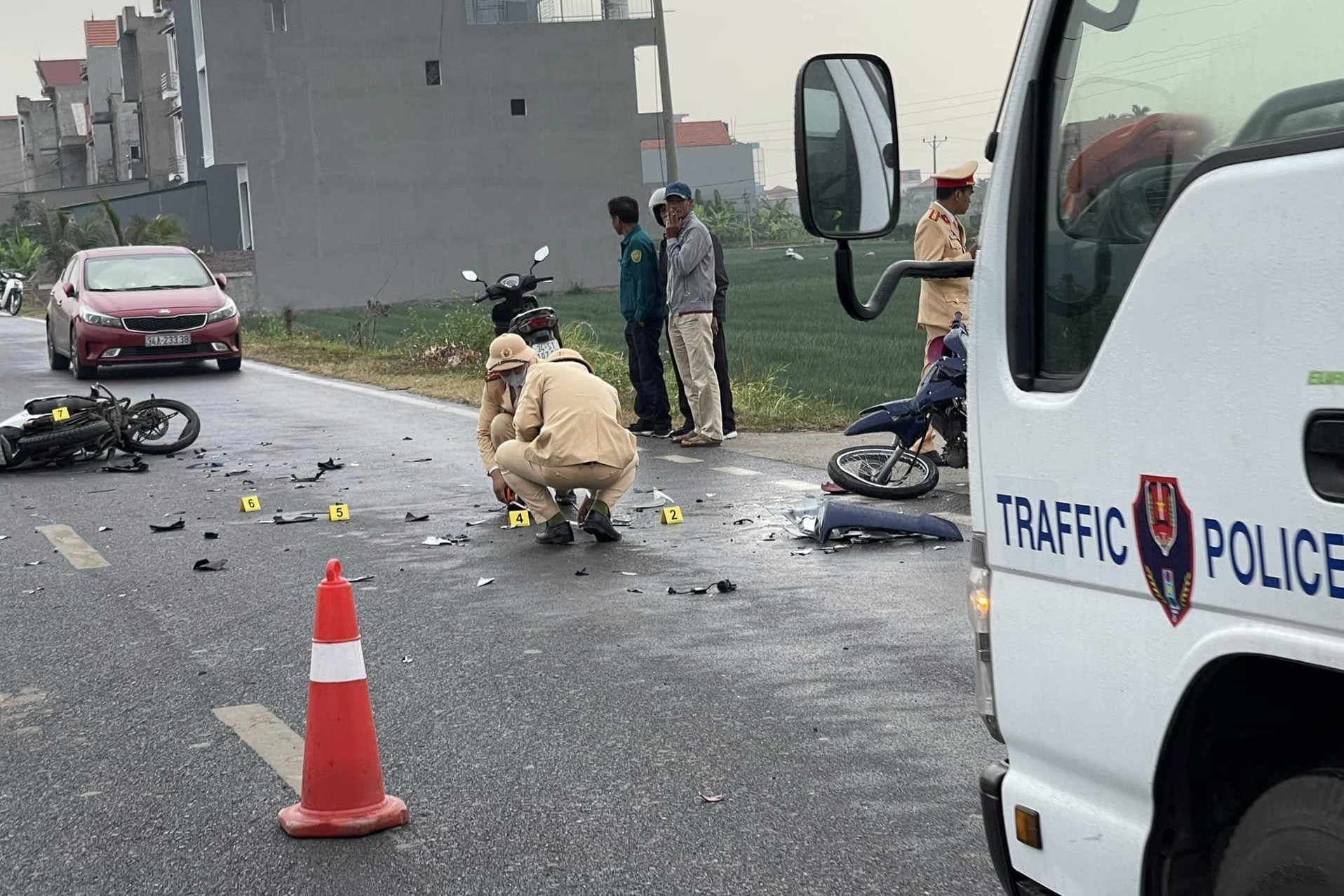 Cụ thể, xe mô tô biển số 34AS-107.48 do anh Nguyễn Văn Đ. (sinh năm 2009, trú tại Thượng Quận - Kinh Môn - Hải Dương) điều khiển, chở theo Trần Mạnh H. (sinh năm 2009 cùng trú tại Thượng Quận - Kinh Môn - Hải Dương) đi theo hướng xã Thượng Quận đi xã Quang Thành đã va chạm với xe mô tô biển số 34F1-217.59 đi ngược chiều do anh Lê Anh D. (sinh ngày 31/8/2006, trú tại Phạm Thái - Kinh Môn) điều khiển.