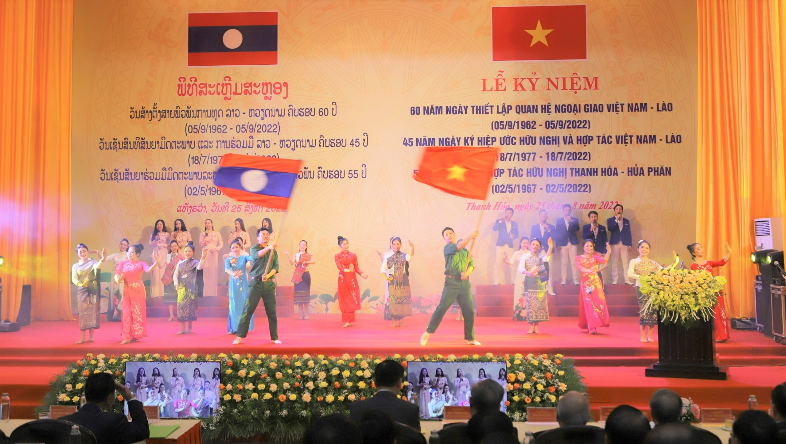 Cũng trong sáng nay, tỉnh Thanh Hóa đã tổ chức Lễ kỷ niệm 60 năm thiết lập quan hệ ngoại giao Việt Nam - Lào (5/9/1962 - 5/9/2022); 45 năm ký kết Hiệp ước hữu nghị và hợp tác Việt Nam - Lào (18/7/1977 - 18/7/2022) và 55 năm tình hữu nghị giữa hai tỉnh Thanh Hóa - Hủa Phăn.