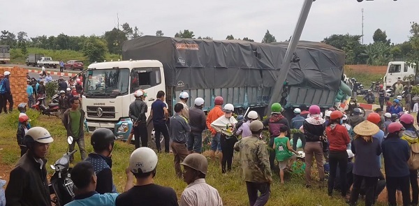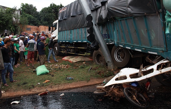 - Xe tải chở cà phê dừng đèn đỏ thì bị xe bồn trộn bê tông chạy cùng chiều mất thắng tông từ phía sau đẩy lao về phía trước tông vào hàng loạt xe máy đang dừng đèn đỏ làm nhiều người thương vong.