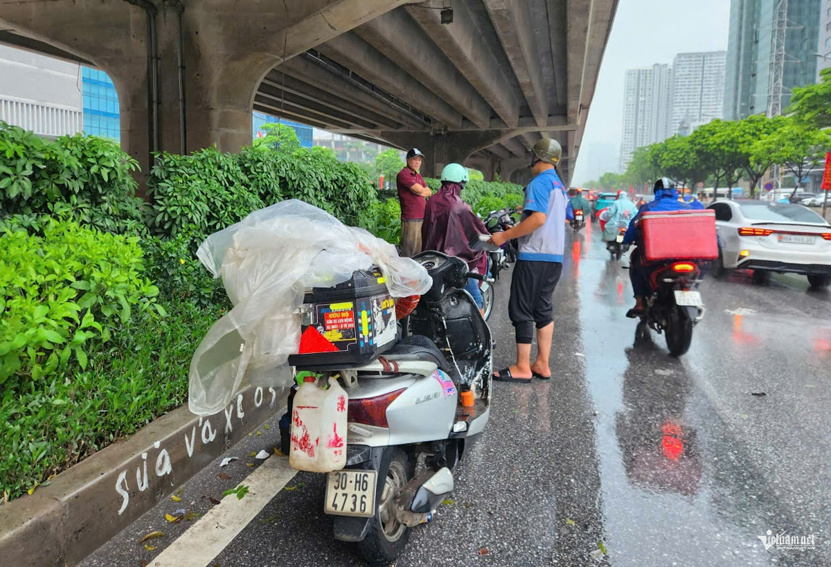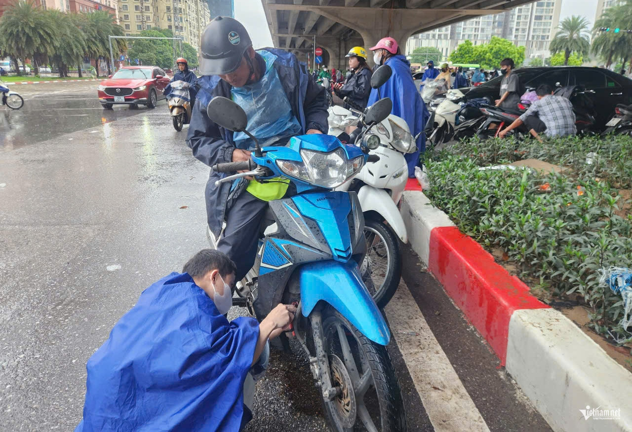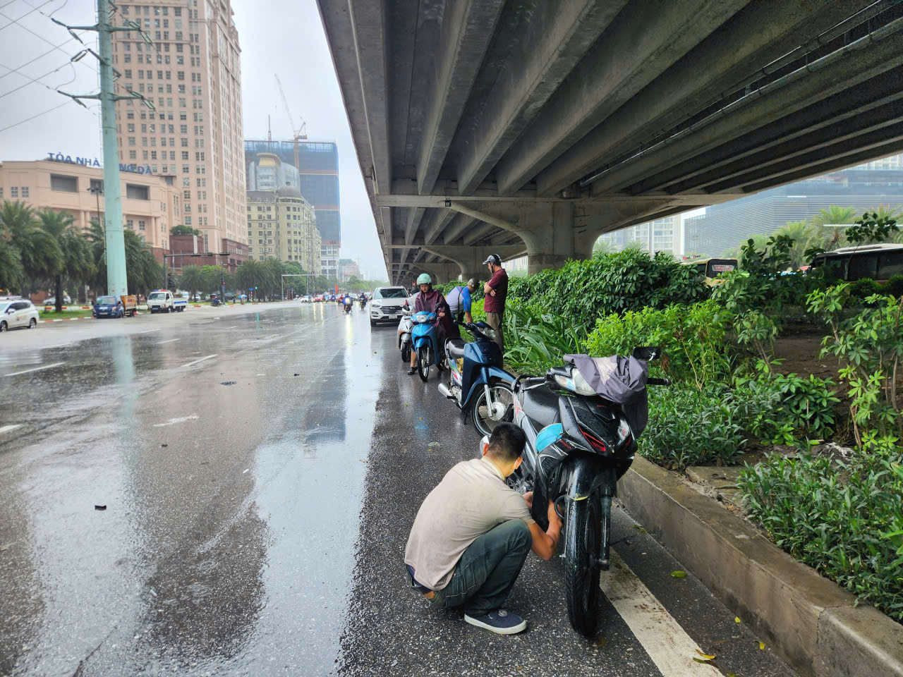 Tại nhiều cửa hàng sửa chữa, không khí khẩn trương chẳng khác gì phòng cấp cứu. Anh Nguyễn Tuấn Hùng, thợ sửa xe trên đường Hạ Yên Quyết (phường Yên Hòa, Hà Nội), cho biết: “Hôm nay lượng xe chết máy vì ngập nước là nhiều nhất”.