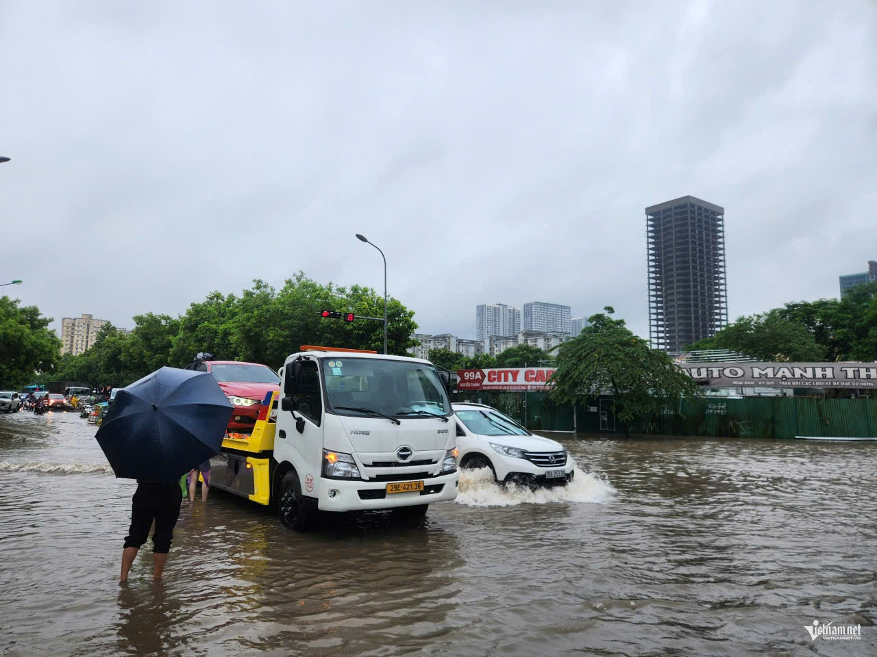 Chiều 26/8, nước trên đường phố Hà Nội đã cơ bản rút, song vẫn còn các điểm ngập sâu cục bộ. Nhiều xe máy, ô tô khi đi qua khu vực này bị chết máy. Người đi xe máy phải dắt bộ hàng trăm mét để tìm tiệm sửa chữa, trong khi ô tô buộc phải nhờ xe cứu hộ chuyên dụng.