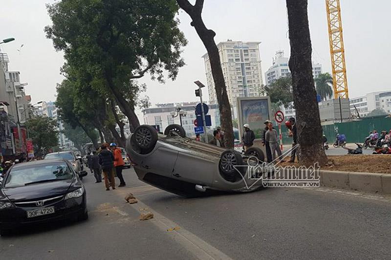 Theo một số người dân, lúc vòng qua đoạn quay đầu xe, chiếc xe đâm vào đoạn bê tông dải ngăn cách 2 làn đường, mất lái, chiếc ô tô bị lật.
