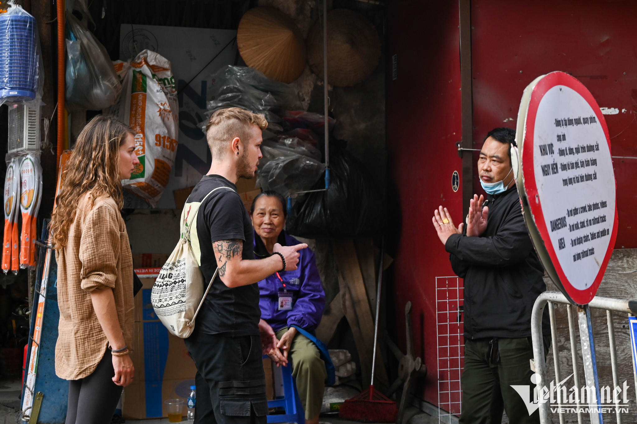 Tại các rào chắn lối vào phố cà phê, lực lượng bảo vệ vẫn túc trực, liên tục giải thích và ngăn du khách vào bên trong.