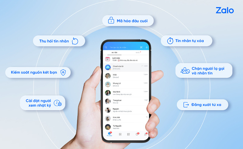 Zalo vốn được đánh giá cao trong việc phát triển nhiều tính năng giúp người dùng chủ động bảo vệ quyền riêng tư và bảo mật thông tin trên không gian mạng. Đơn cử, người dùng có thể cài đặt nguồn nhận lời mời kết bạn, chủ động kiểm soát các cách người dùng khác có thể tìm được tài khoản Zalo của mình để tránh trường hợp bị làm phiền hoặc lộ thông tin, ảnh cá nhân. Ngoài ra, trên Zalo người dùng cũng có thể theo dõi đăng nhập và đăng xuất từ xa, chặn xem nhật ký và bình luận, chặn người lạ gọi điện hoặc nhắn tin, cài mật khẩu cho cuộc trò chuyện, đặt mã khóa cho ứng dụng...